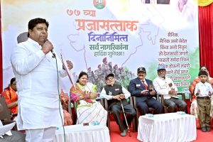 भाजपाचे नगरसेवक सुहास जगताप यांच्यावतीने ७७ व्या प्रजासत्ताक दिनाचे औचित्य साधून शहरात देशभक्तीपर वातावरणात कार्यक्रमाचे आयोजन करण्यात आले. भारतमाता प्रतिमा व अमर जवान ज्योत प्रतिकृतीचे पूजन करून तिरंगा ध्वजारोहण करण्यात आले. उपस्थित मान्यवरांनी तिरंग्यास मानवंदना देत राष्ट्रगीत गायन केले.